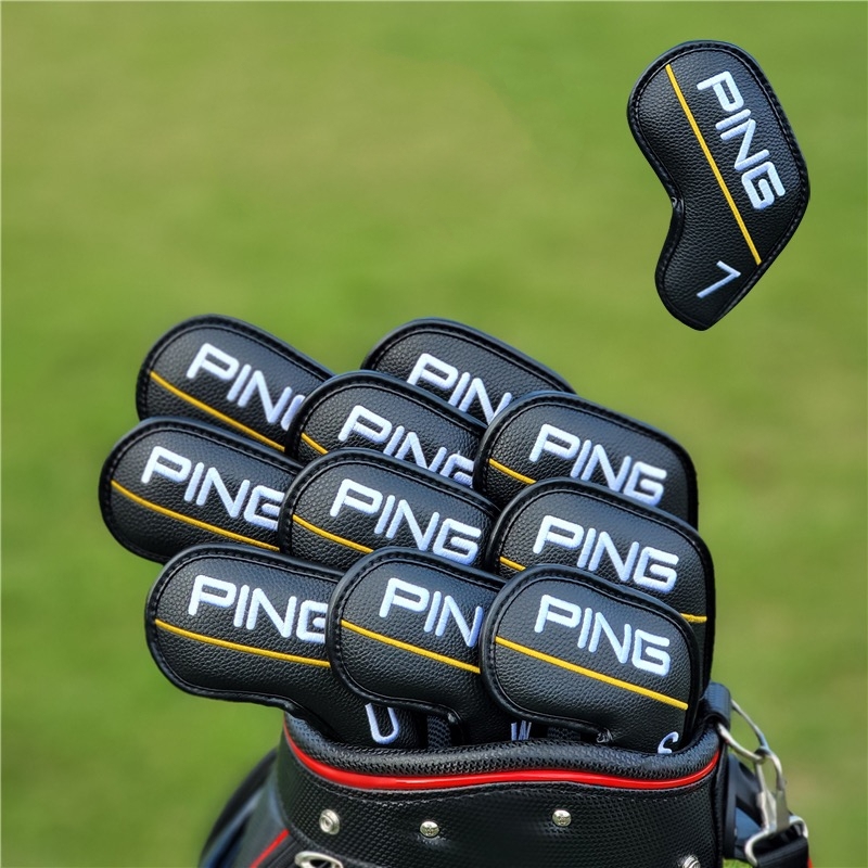 - Golf Iron 4-9-PWUS Head Cover PING Pong Classic Yellow Line Black White 10pc Set