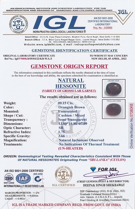 Gomed / Grossularia - 9.15 Carati - Cingalese - Non Trattato/Non Scaldato -