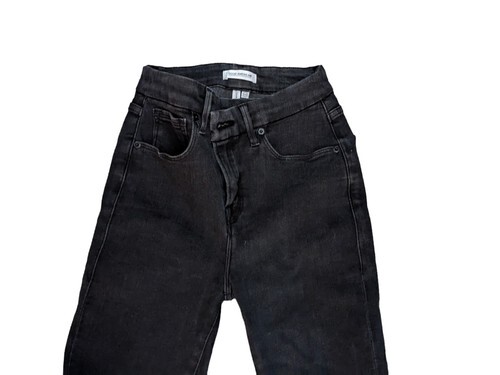 Black wash. These jeans have the offset front button closure. Super stretchy! So figure flattering! These jeans are in MINT CONDITION!