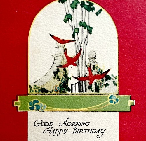 - Good Morning Happy Birthday Greeting Postcard 1910s Red Birds Swallows PCBG3D