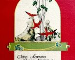 Good Morning Happy Birthday Greeting Postcard 1910s Red Birds Swallows PCBG3D
