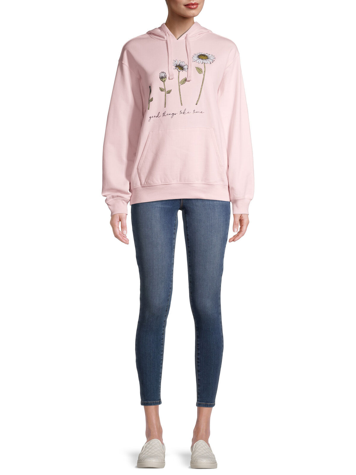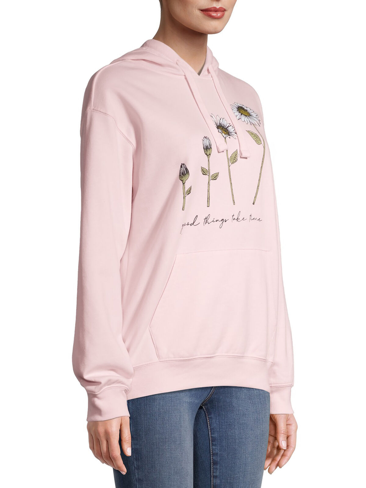Who doesn't love flowers! Pick up this comfy stylish pullover hoodie with a beautiful floral design.60% Cotton / 40% Polyester - Machine Wash; Long Sleeve Pullover Hooded Fleece, Graphic design