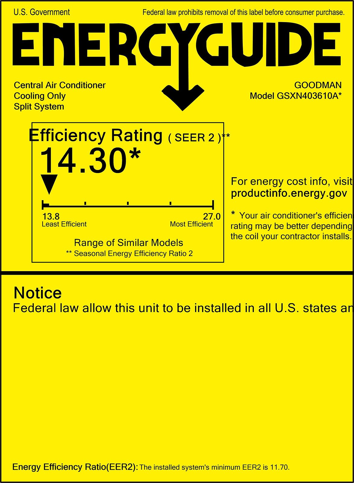 Goodman 3 Ton 15.2 SEER2 Air Conditioning System (9-Speed Motor) - Free Thermost