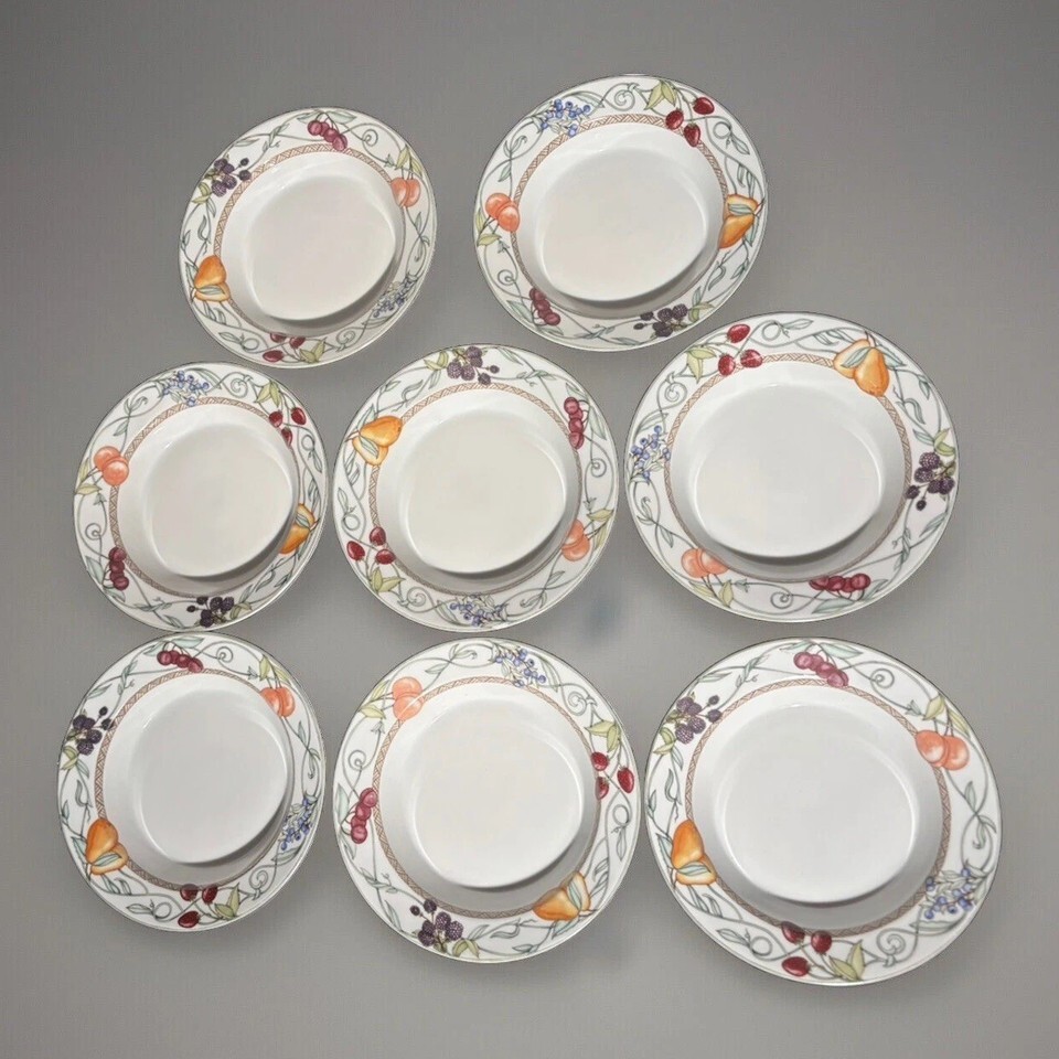 - GORGEOUS DANSK UMBRIAN FRUITS RIM SOUP BOWLS - SET OF 8 8 1/2”