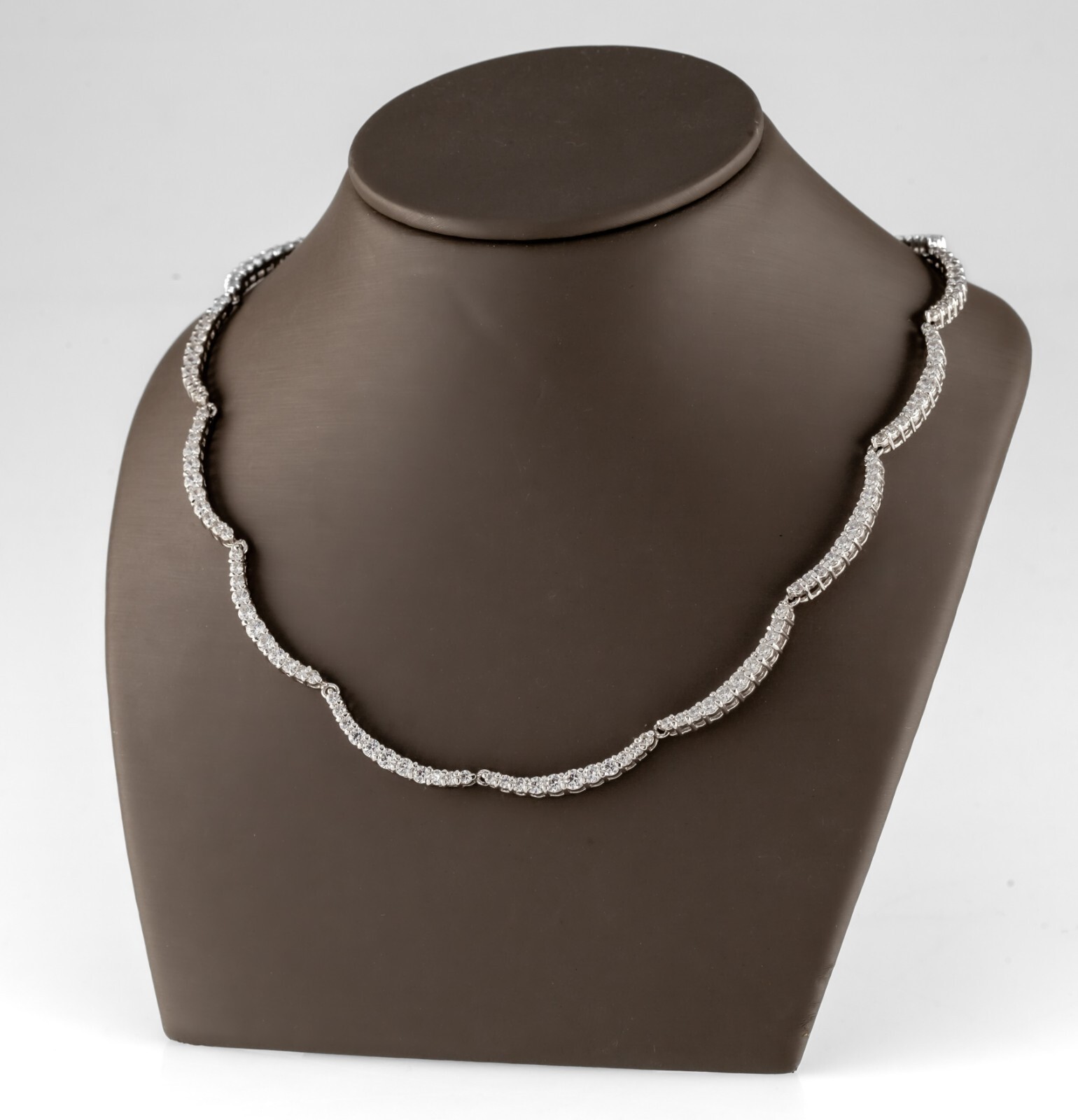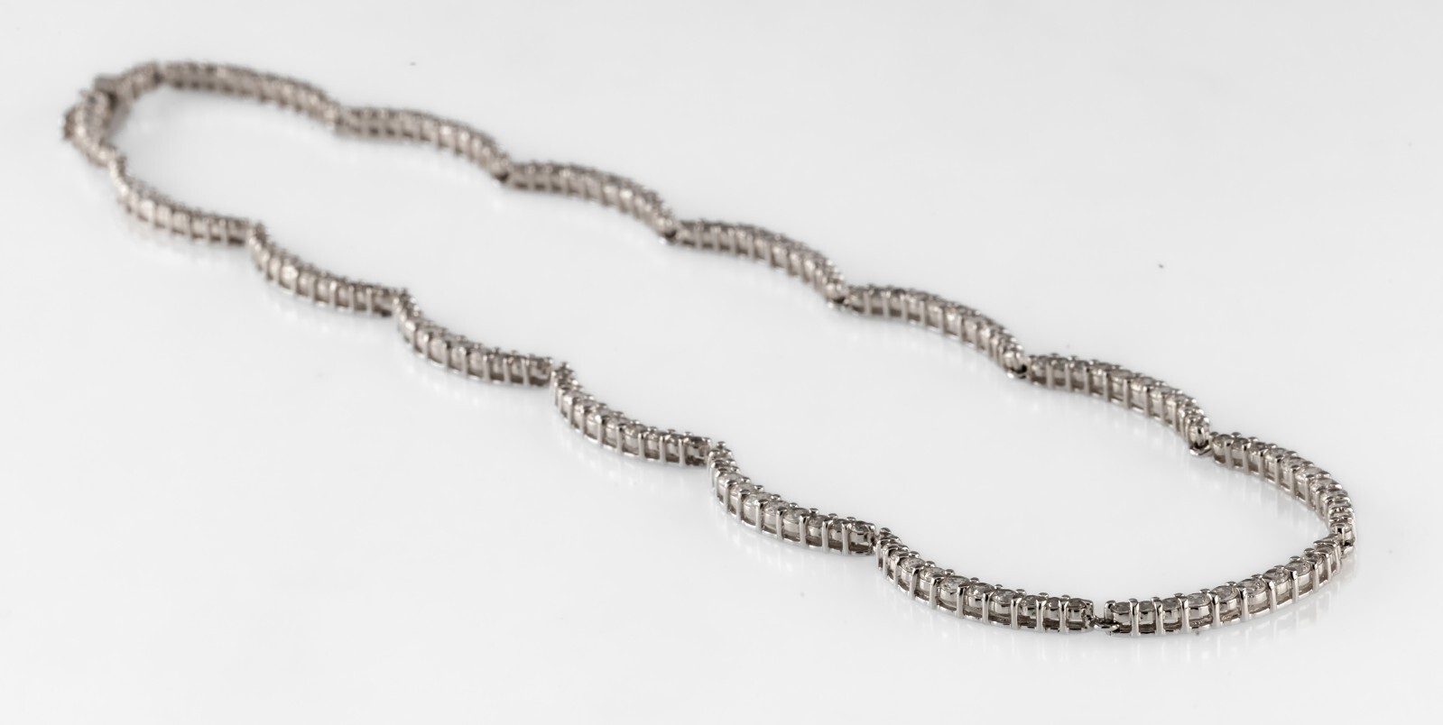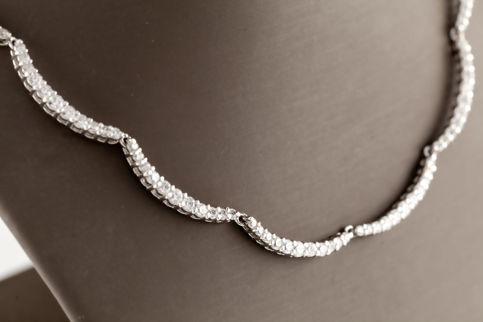 - Gorgeous Sterling Silver Cubic Zirconia Wave Link Necklace 16"