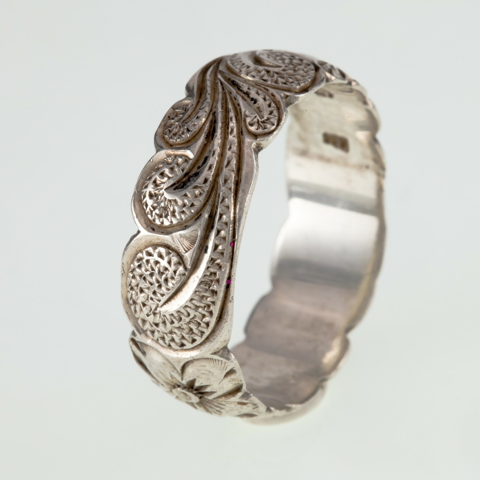 - Gorgeous Sterling Silver Etched Floral Band Ring Size 11
