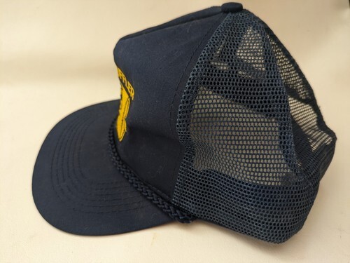 A la venta hay una tapa de gorra con cierre a presion ajustable con cuerda de beisbol azul Trucker de Mr Muffler, poco usada.