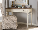 Features: Constructed from rubberwood, MDF wood, and LVL Walnut brown finish One drawer Drawer with rustic finished nut pulls Meticulously carved French fluted legs Solid and Quality Construction Set Includes: One (1) Desk