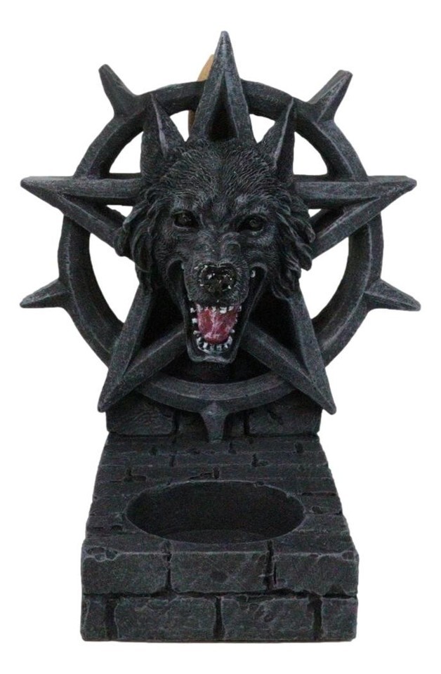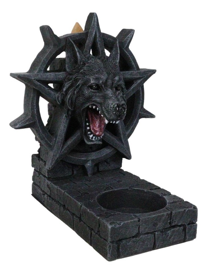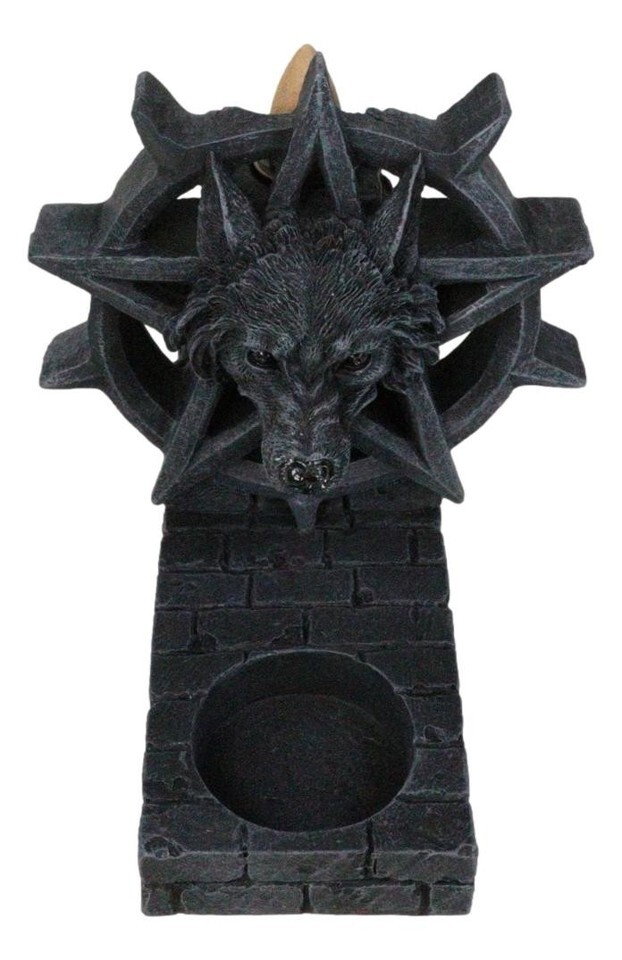 Gothic Alpha Wolf Pentagram Wheel Candle And Backflow Incense Cone Burner Holder