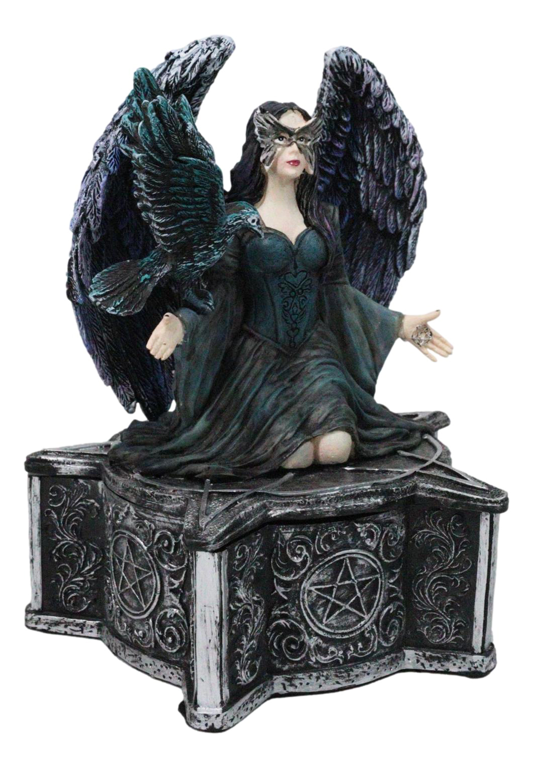 - Gothic Fairy Queen With Raven Crow On Pentagram Star Decorative Box Figurine