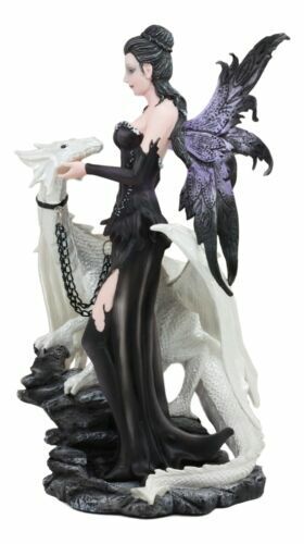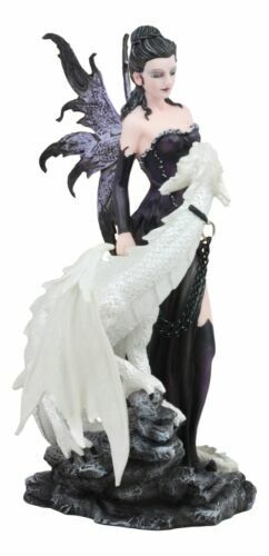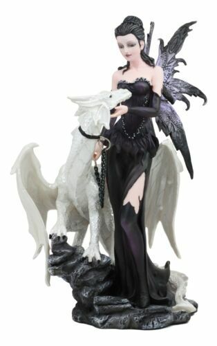 - Gothic Khaleesi Fairy With Arctic White Dragon Statue 9.5"H Dungeons Dragons Art