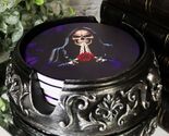 Ebros Gothic Tribal Tattoo Scrollwork Morbid Skulls With Grim Reaper Rose Coaster Set