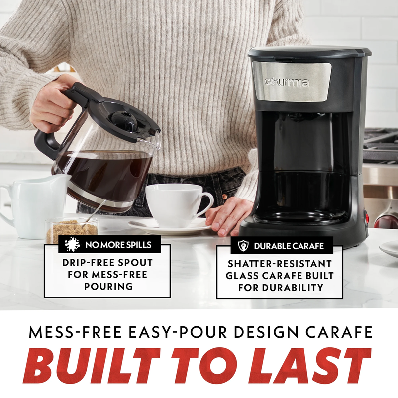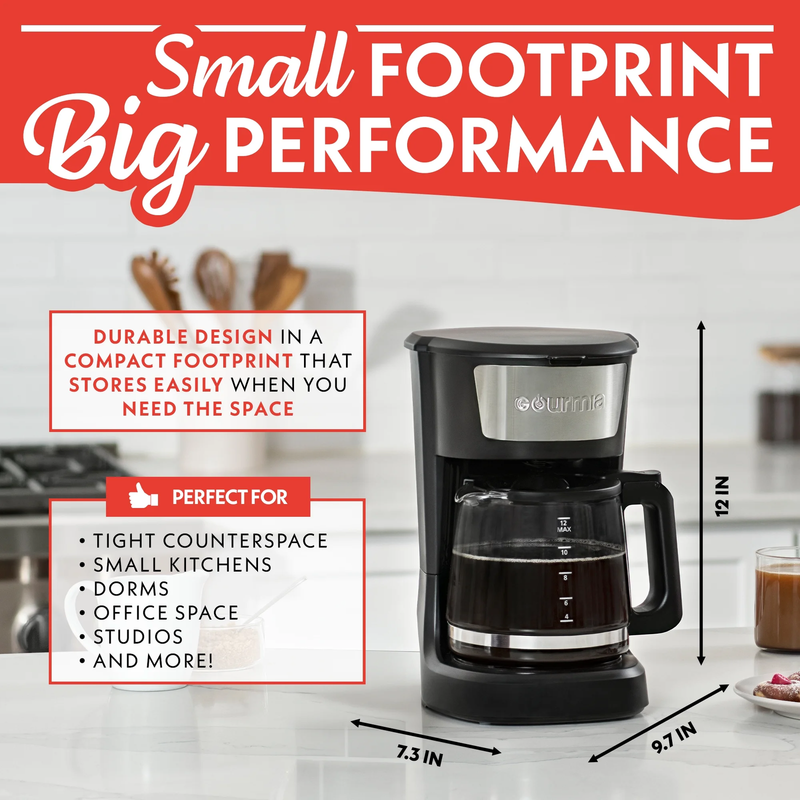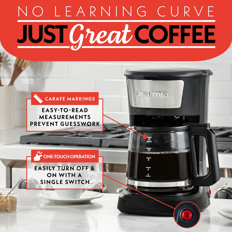 - Gourmia One-Touch Switch Black 12-Cup Drip Coffee Maker