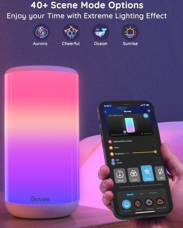 - Govee RGBICWW Smart Table Lamp App Control Bedside Lamp