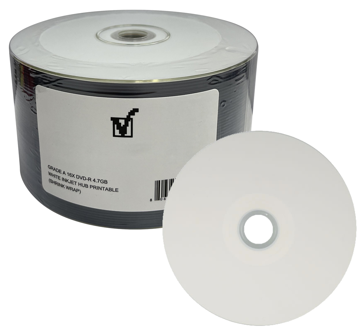 - Grade A 16X DVD-R 4.7GB White Inkjet Hub Printable (Shrink Wrap)