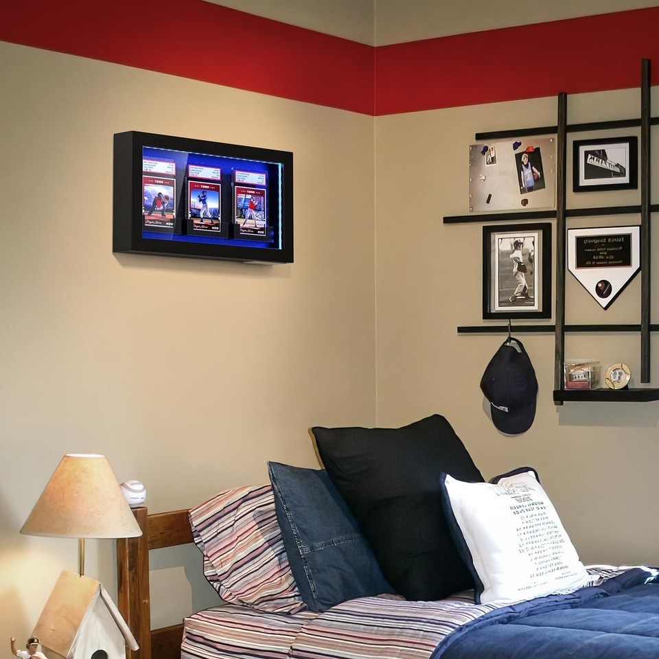 Graded Trading Card Display Case 3 LED Light Sport Baseball PSA Slabs Wood Frame