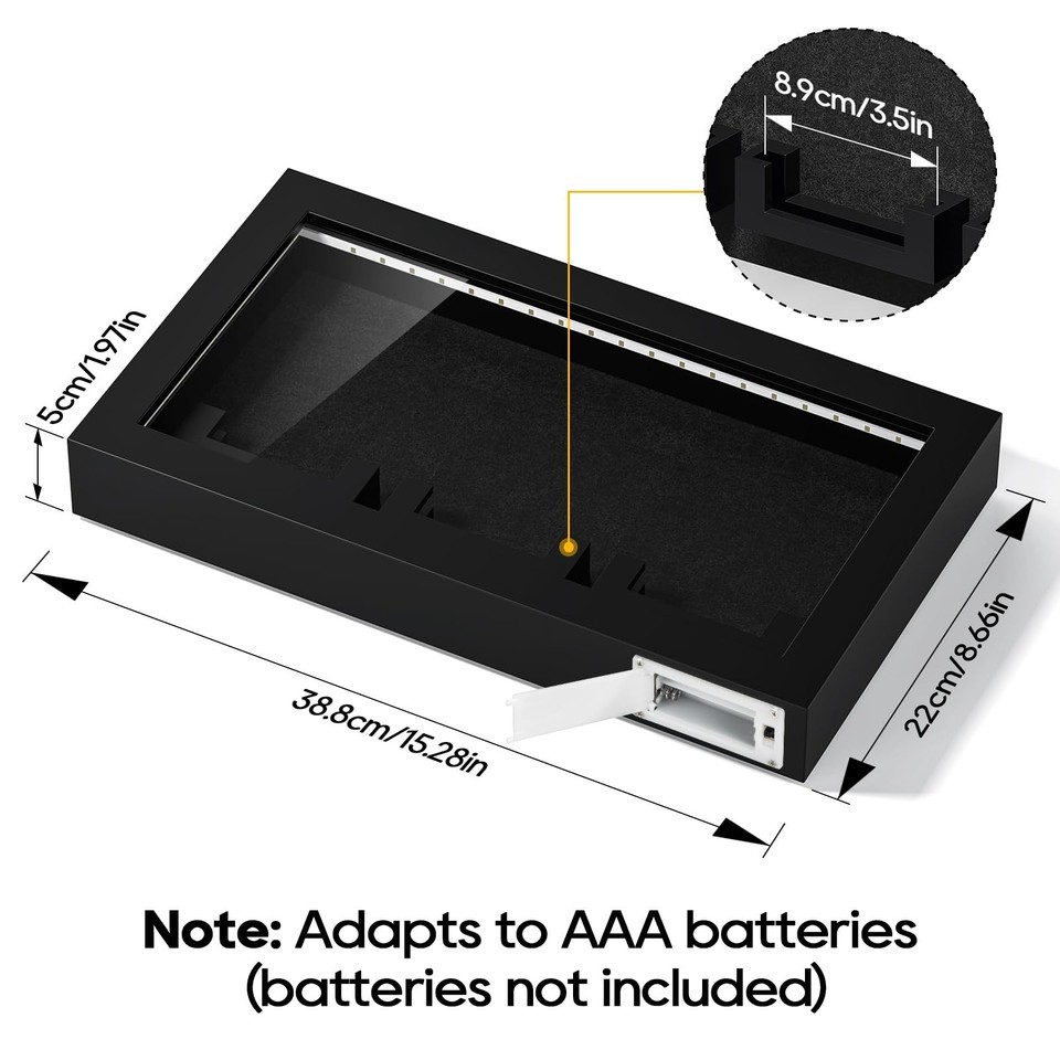 LED Backlighting: Illuminate your collectibles with built-in LED lights on the back. Create a captivating display and highlight the details of your cherished items, allowing you to create the perfect ambiance for your display. Note: Adapts to AAA batteries (batteries not included).