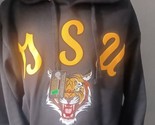 Description: Represent the HBCU sports conference with this custom Pullover hoodie jacket. Felt Letters, Twill Logo Tiger. HBCU Team logos as seen. Highly detailed sewn patches as seen. Long sleeve with logos as seen. Highly detailed item. High quality cotton. Perfect for all occasions