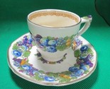 - GRAND DUCAL ENGLAND 2 COFFEE CUPS AND SAUCER FLORAL FLORENTINE [51]