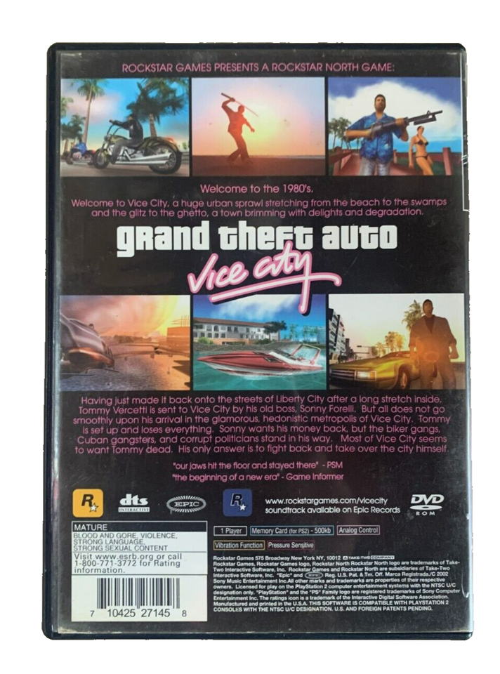 - Grand Theft Auto: Vice City (Sony PlayStation 2, 2002): GAME AND CASE NO MANUAL