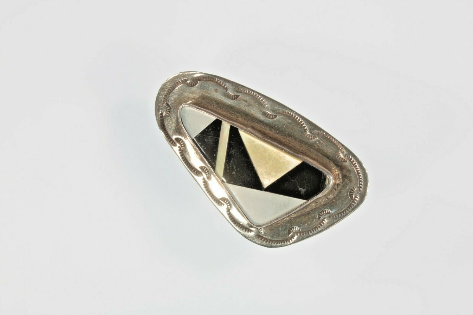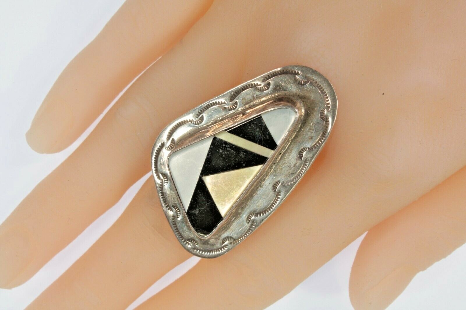 Grand Zuni Géométrique Incrustation Argent Sterling Bague Sz: 6.25