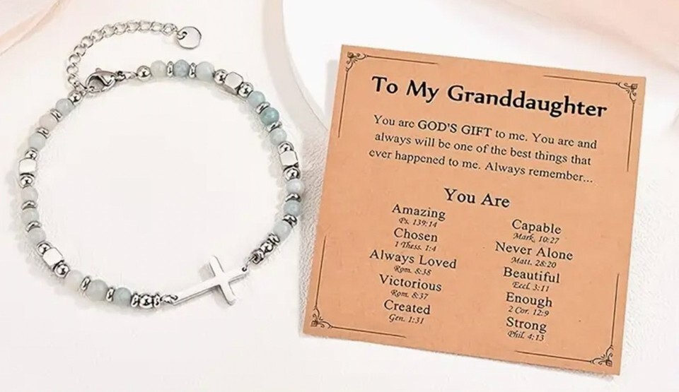- Granddaughter gray/white/silver stone with Cross Bracelet. New #AB-385-R2