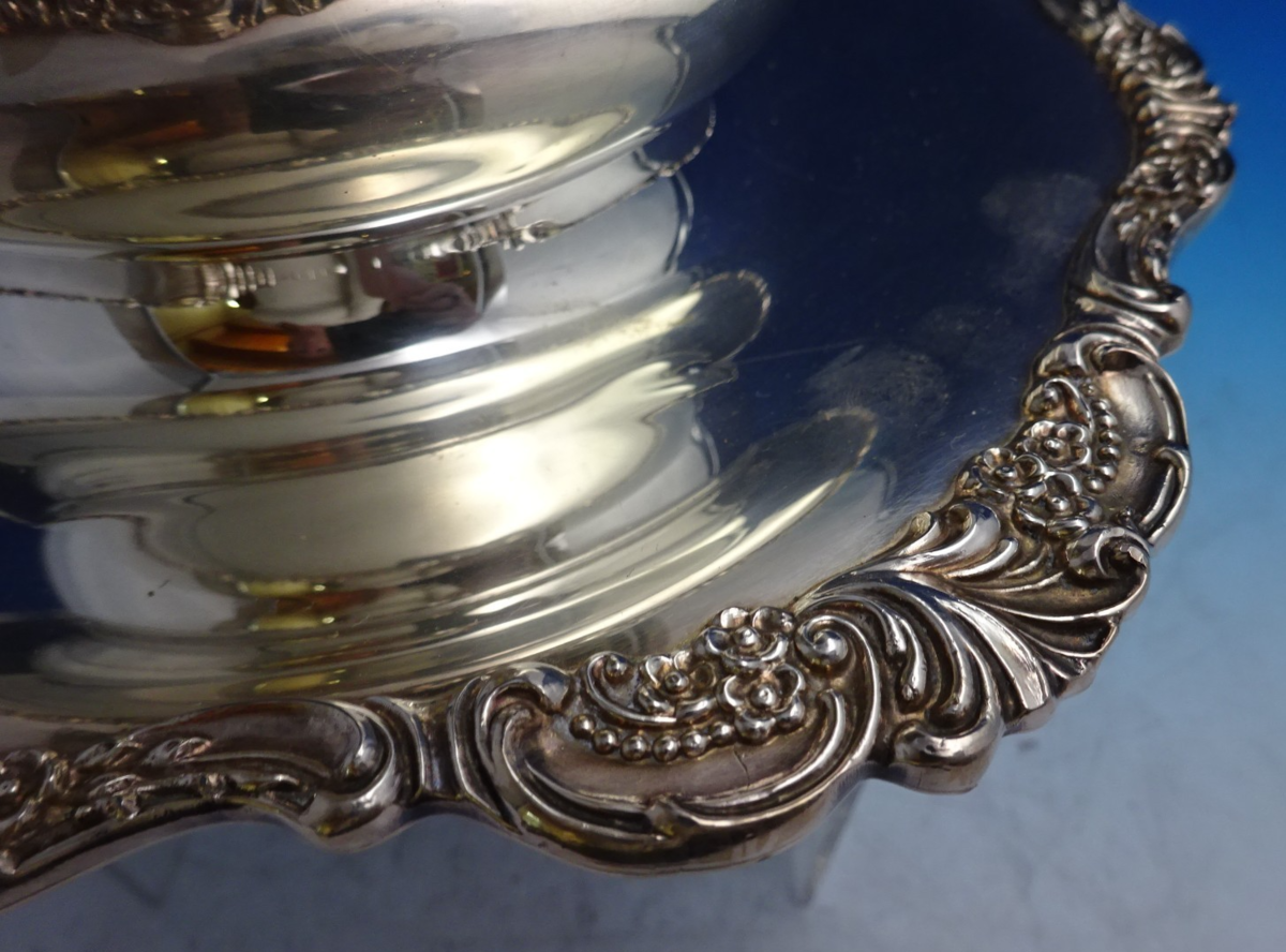 This pattern was made by Wallace to use alongside Grande Baroque sterling flatware. It is not monogrammed and is in good estate condition as shown in the photos, with minor surface imperfections as expected with age. Wonderful!