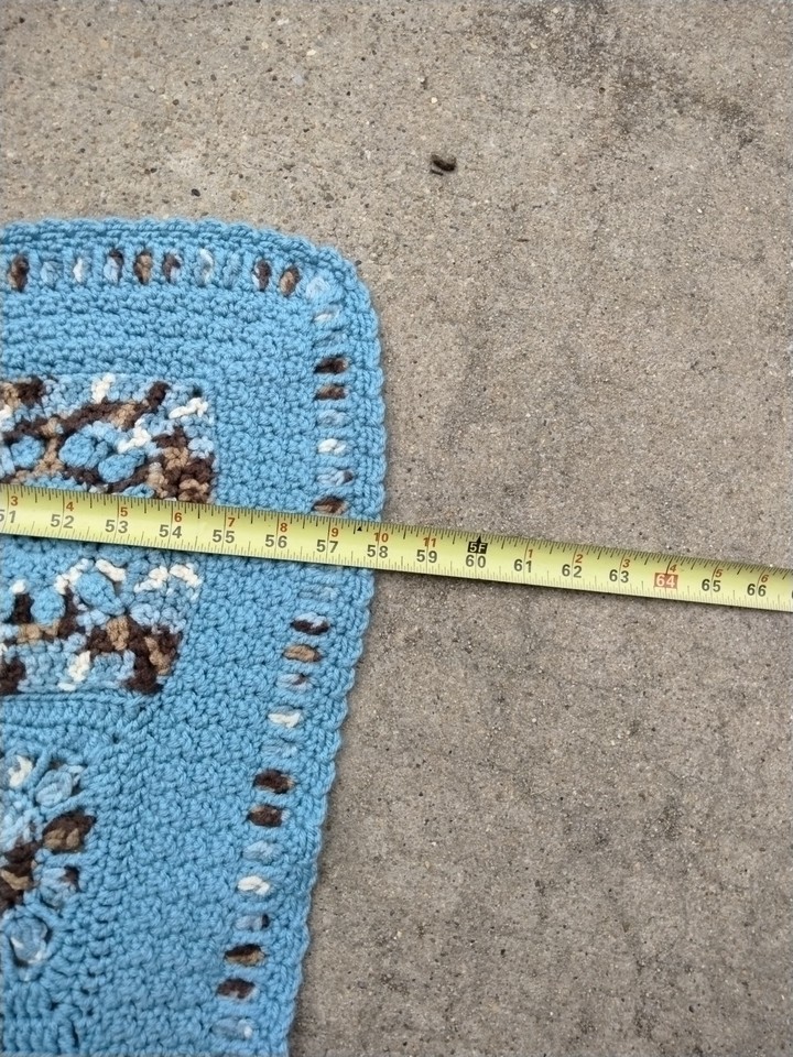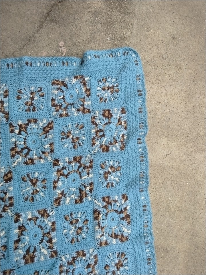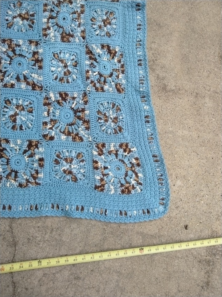 - Granny Square Knit Crochet Afghan Blanket Handmade Blue Brown 43" X 58"