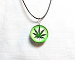 - GRASS GREEN POT LEAF LIME GREEN AND WHITE GLASS PENDANT BLACK 18" CORD NECKLACE