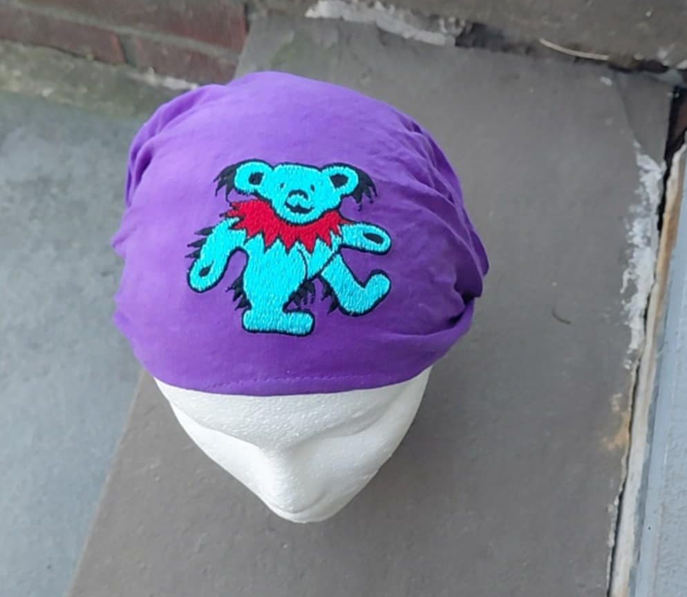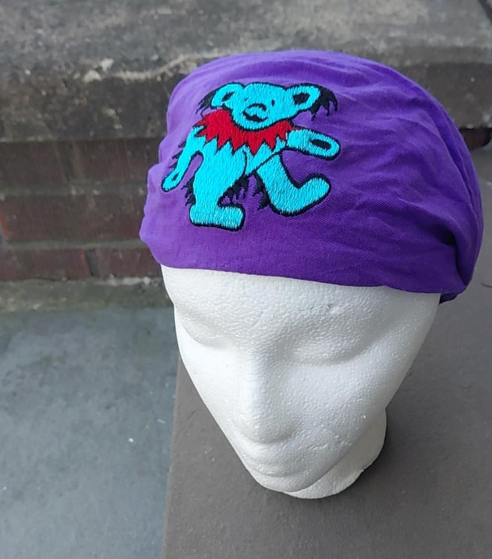 - Grateful Dead Dancing Bear PURPLE Embroidered Headband Doo Rag Unisex #B1