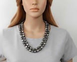 - Gray Black Double Strand Bead Necklace, Covered Clasp