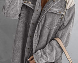 - Gray Color Block Button Down Hooded Corduroy Jacket