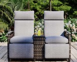 - Gray Outdoor Wicker Adjustable Recliner Loveseat with Storage Table