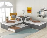 L-shaped Platform Bed with Trundle and Drawers Linked with built-in Desk,Twin,Gray