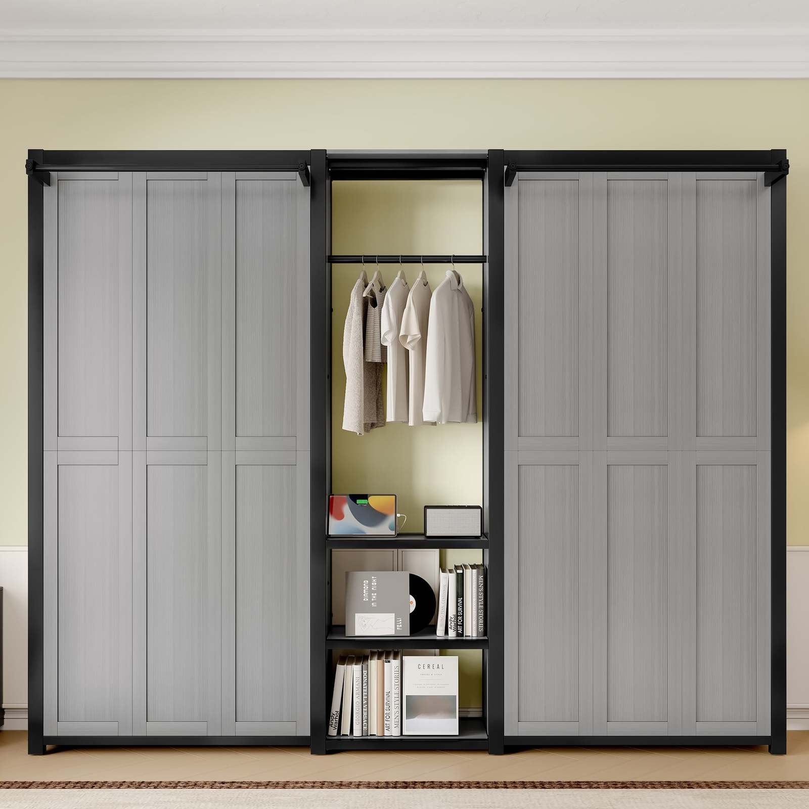 ?Integrated Wardrobe and Open Shelves?More than just a bed ? this Murphy bed with wardrobe comes with a built-in closet and open shelves, giving you ample storage for clothes, bedding, or decor. Keep your essentials organized without sacrificing square footage.