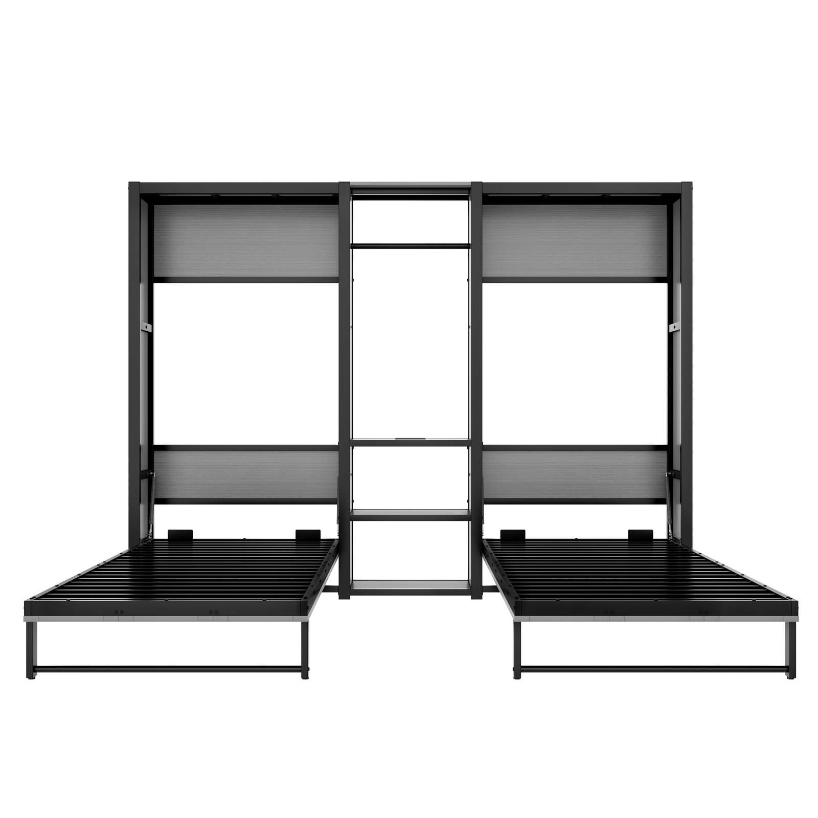 Gray Twin Murphy Bed: Foldable Metal, Wardrobe, Shelves, Power Outlets