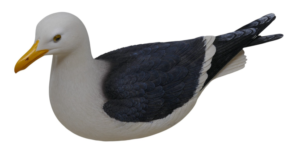 The Great Black-backed Gull Seagull Decoy by Gifts Afloat measures approx. 15" long and 8" tall with minimal wear.