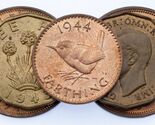 Great Britain 5-Coin Set // Pre-Decimal Coinage // Farthing Halfpenny Threepence