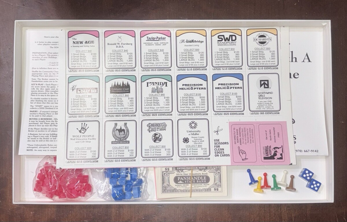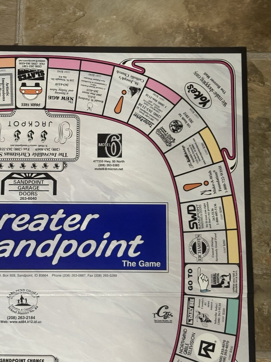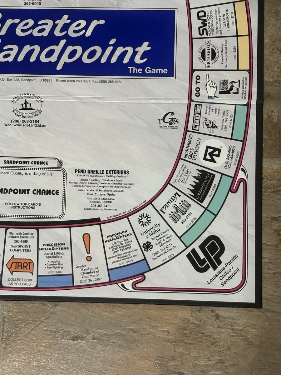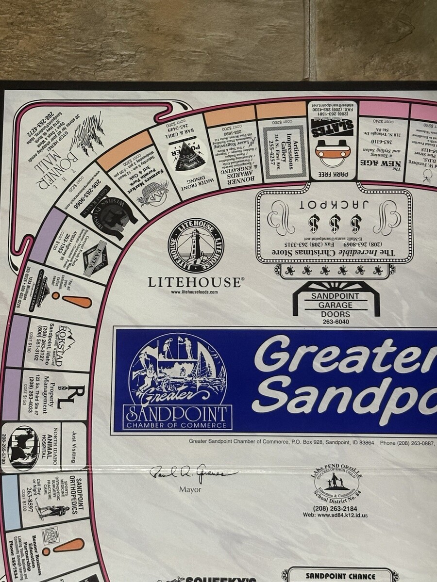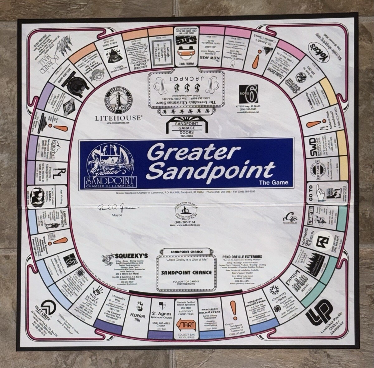 Greater Sandpoint Monopoly Board Game CITY OPOLY The Gand Makers
