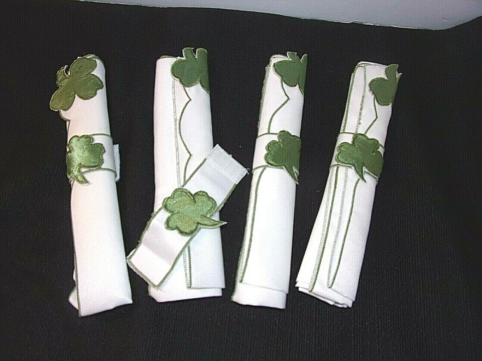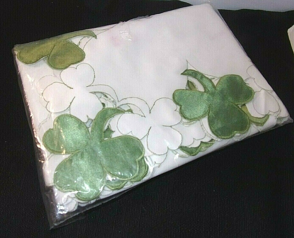 - Green Applique Shamrocks Tablecloth + 4 Napkins Irish Celtic NEW Cloth 34x34