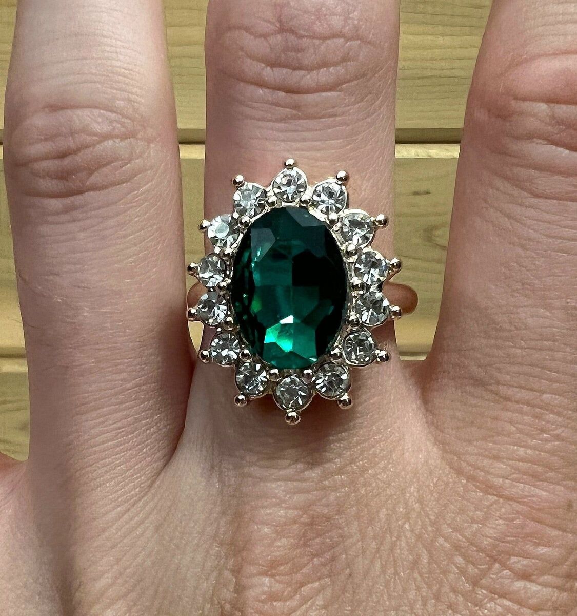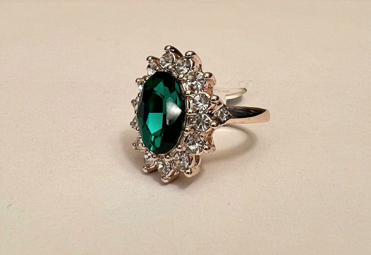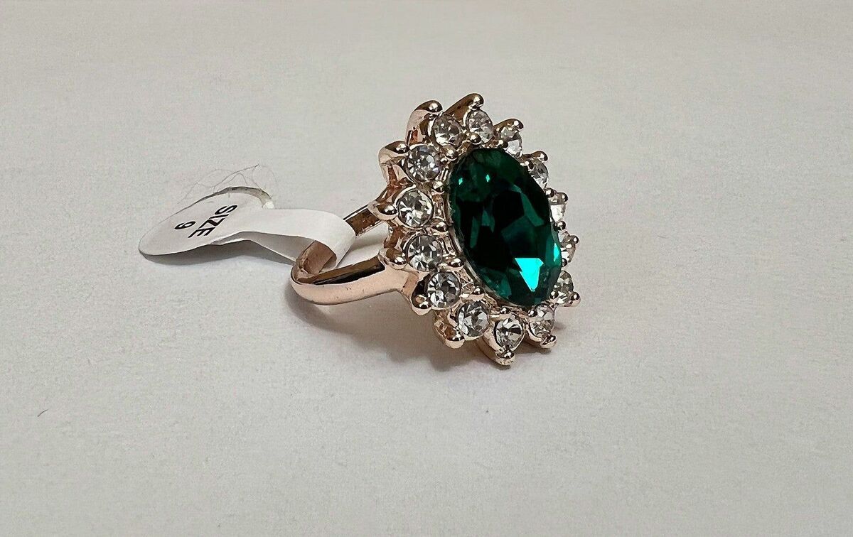 - Green Colored Oval Gem Ring Rose Gold Colored Band Size 9