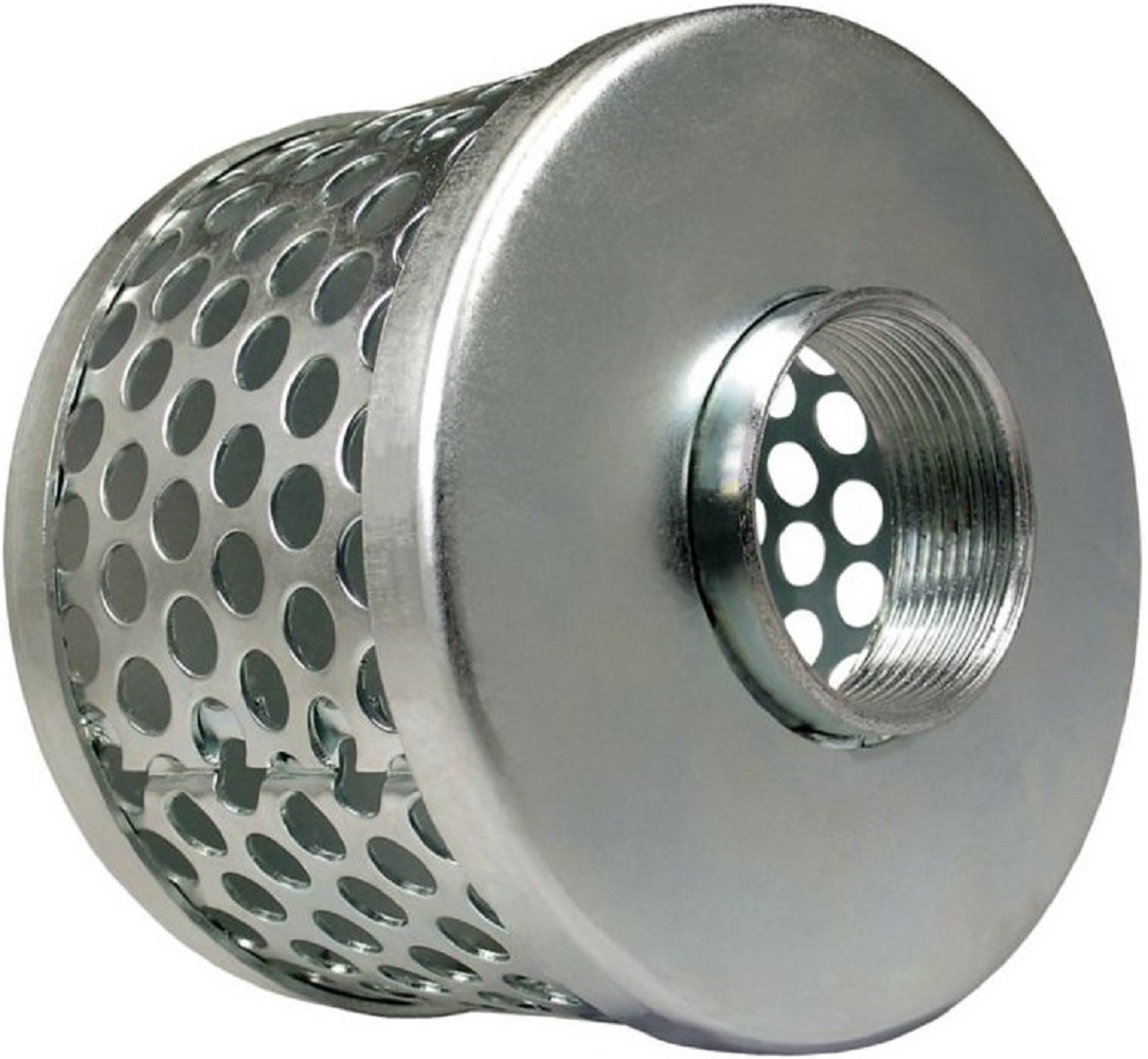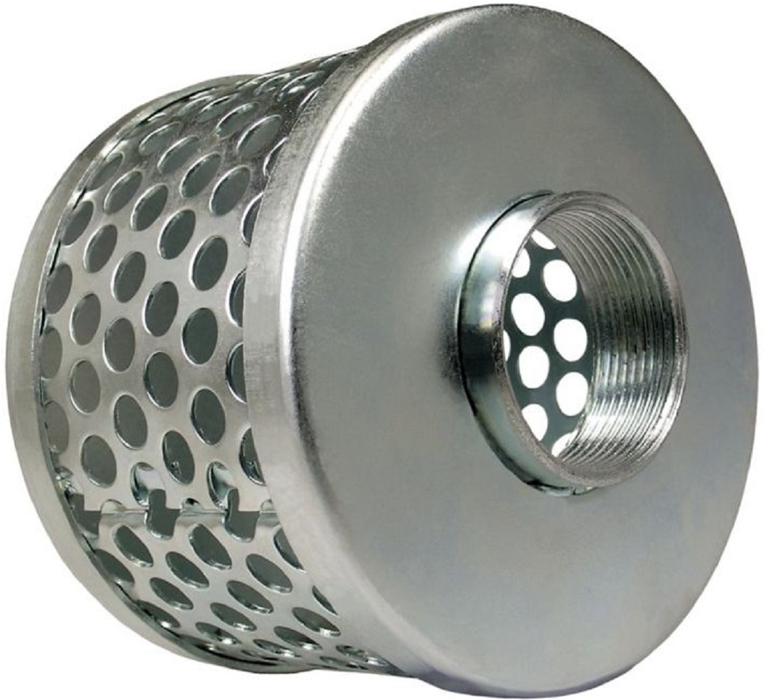 Round hole basket strainer screen type for easy use Made of zinc-plated materials for durability Helps prevent debris from entering a suction line Comes with a Female NPT connection for convenience Suction strainer basket is made of steel for added strength Mesh filter basket strainer screen size measures 1-1/2 in.