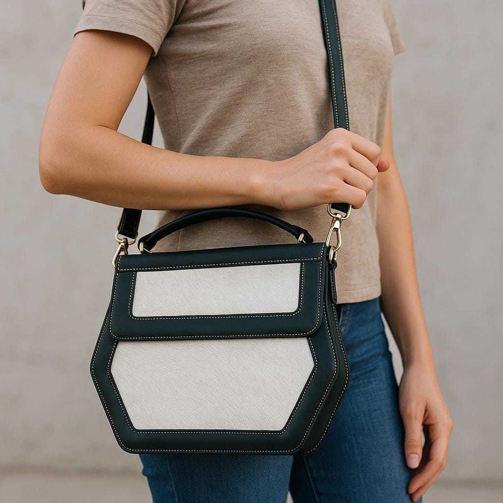 Elegant Green Leather Handbag with Hair?On Goat Hide Panel