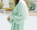 - Green Pleated Ruffled Tie Waist Buttons V Neck Romper