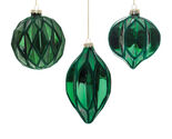 Luxurious Design: Rich emerald green hues with textured harlequin patterns add depth and elegance to your holiday decor. Premium Quality: Crafted from high-quality glass for a delicate yet durable display that lasts for seasons. Easy to Hang: Includes a gold string hanger for effortless placement on your Christmas tree or festive arrangements. Suitable for indoor use only