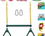 - Green Trapeze Swing Bar with Locking Carabiners - Easy Setup for Kids
