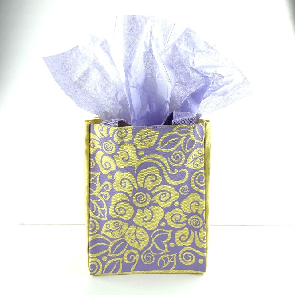 - Green With A Twist Canvas Gift Bag Tote Purple Floral Lunch Hawaiian Summer