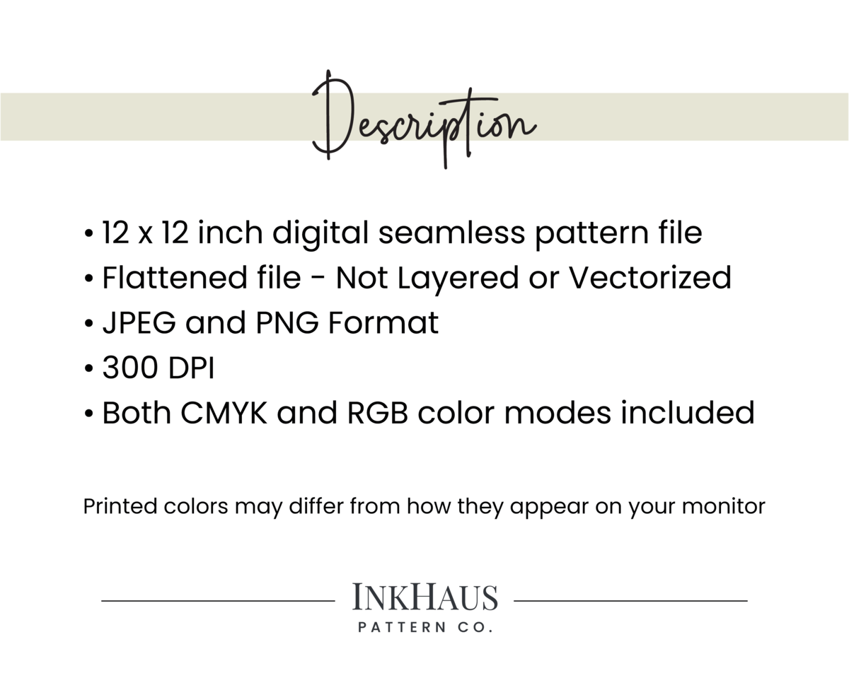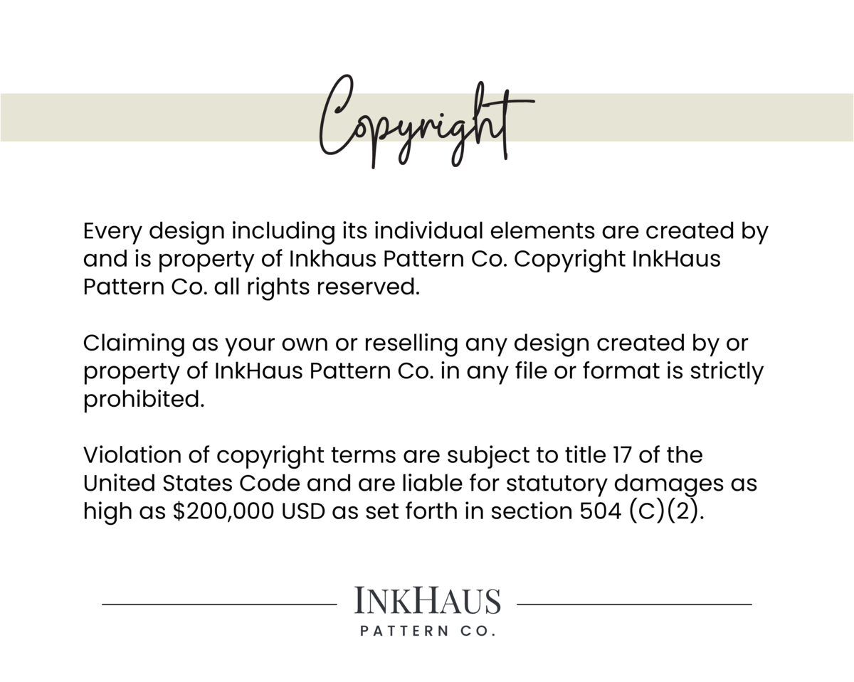 Copying or reselling designs is prohibited. Every design including its individual elements are created by and is property of InkHaus Pattern Co. Copyright InkHaus Pattern Co. All rights reserved.