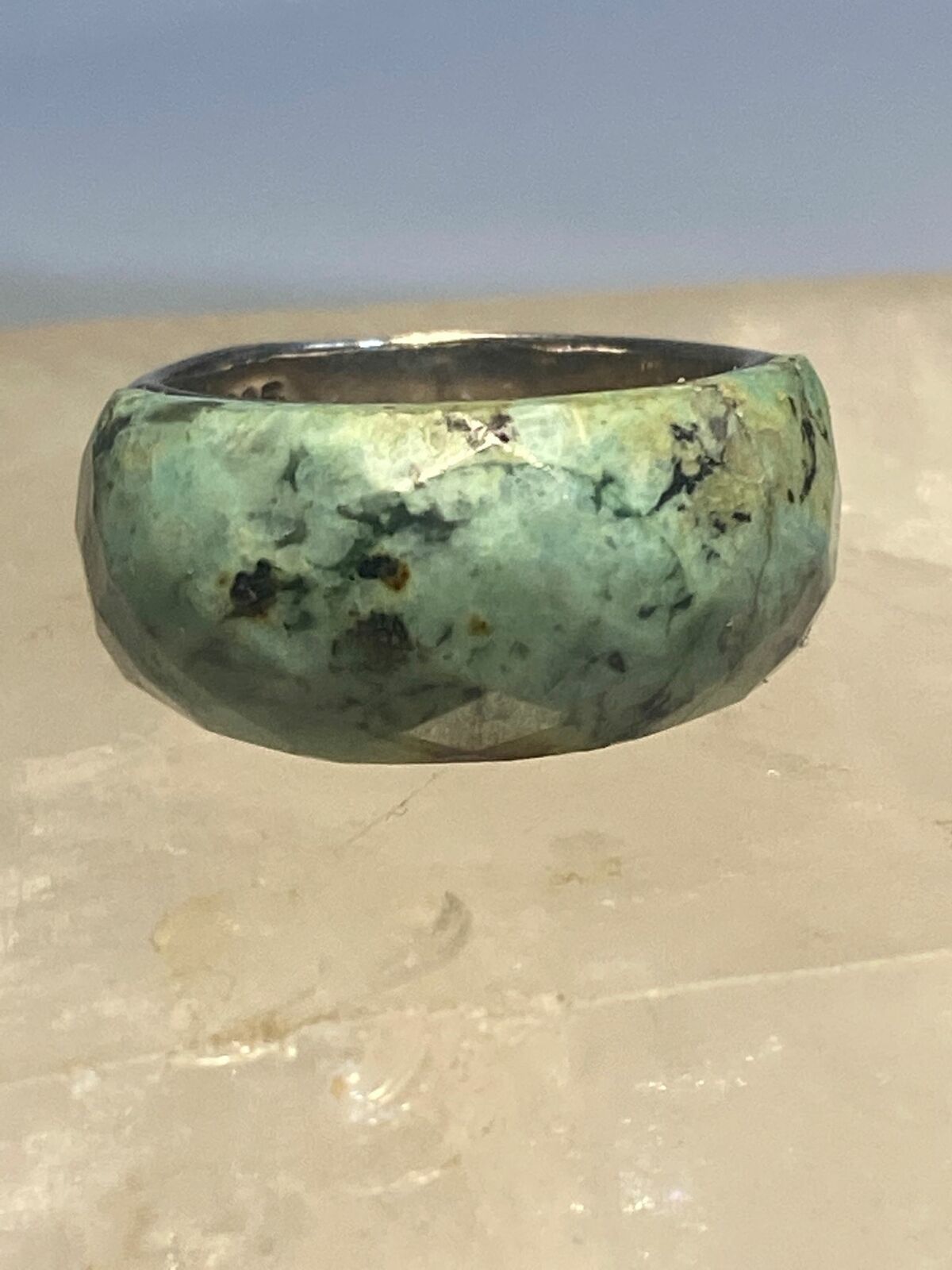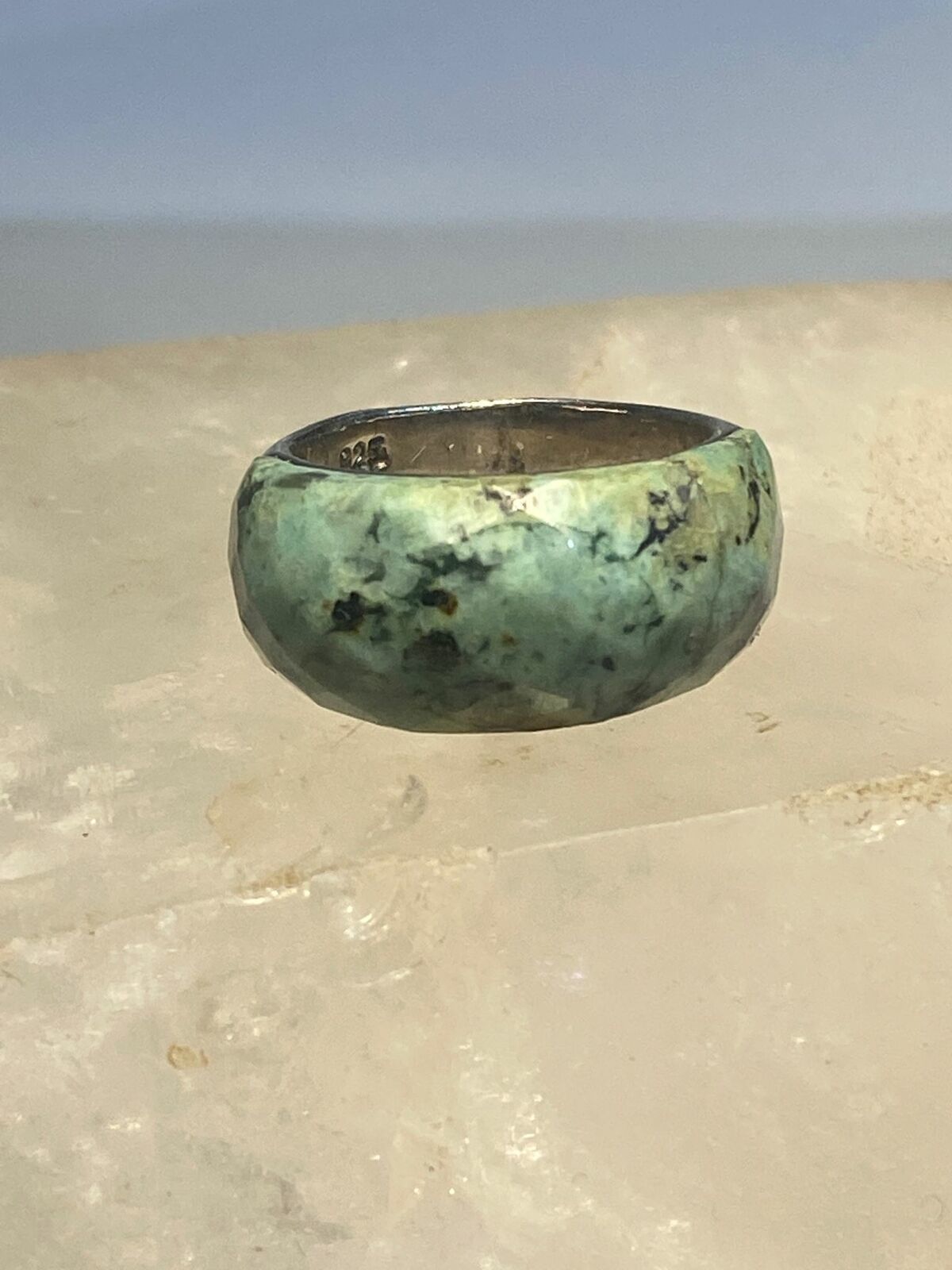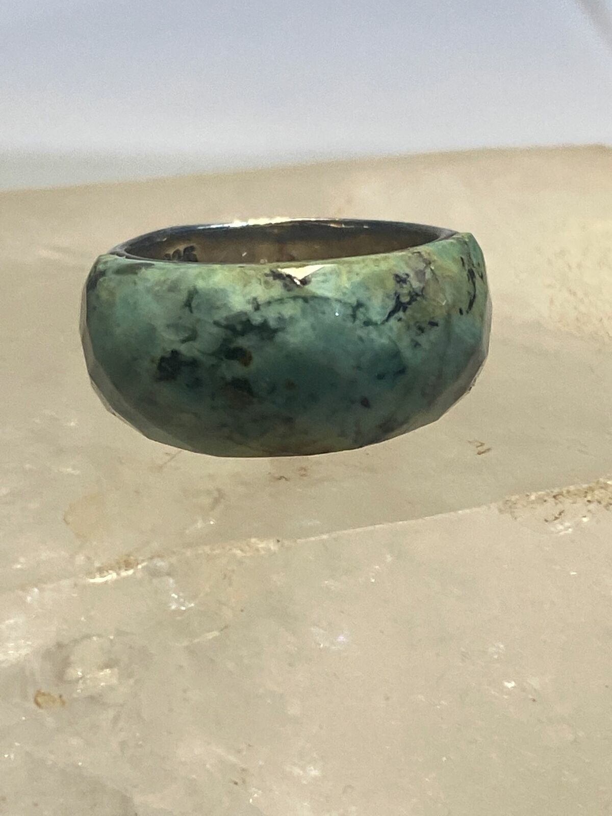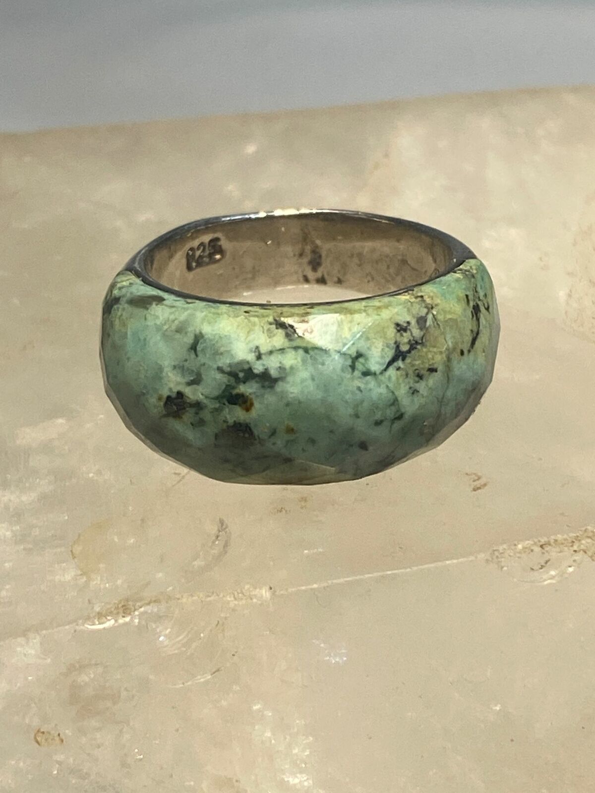 Green quartz? ring faceted band sterling silver women girls