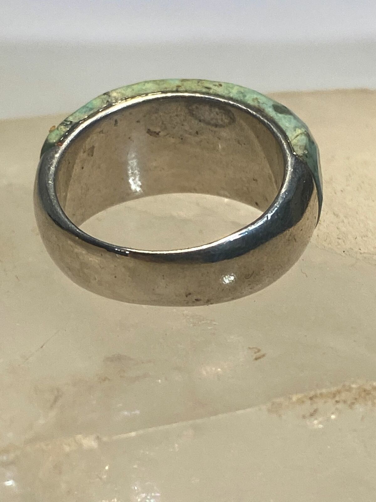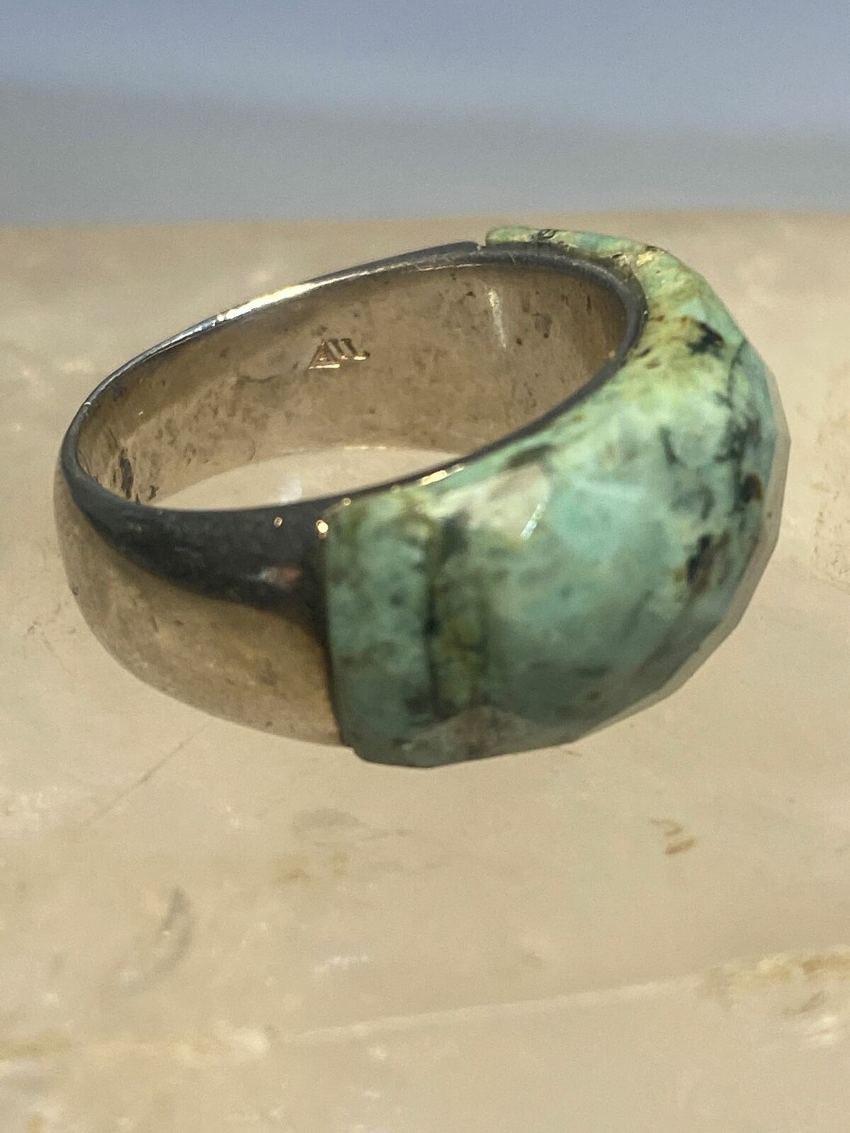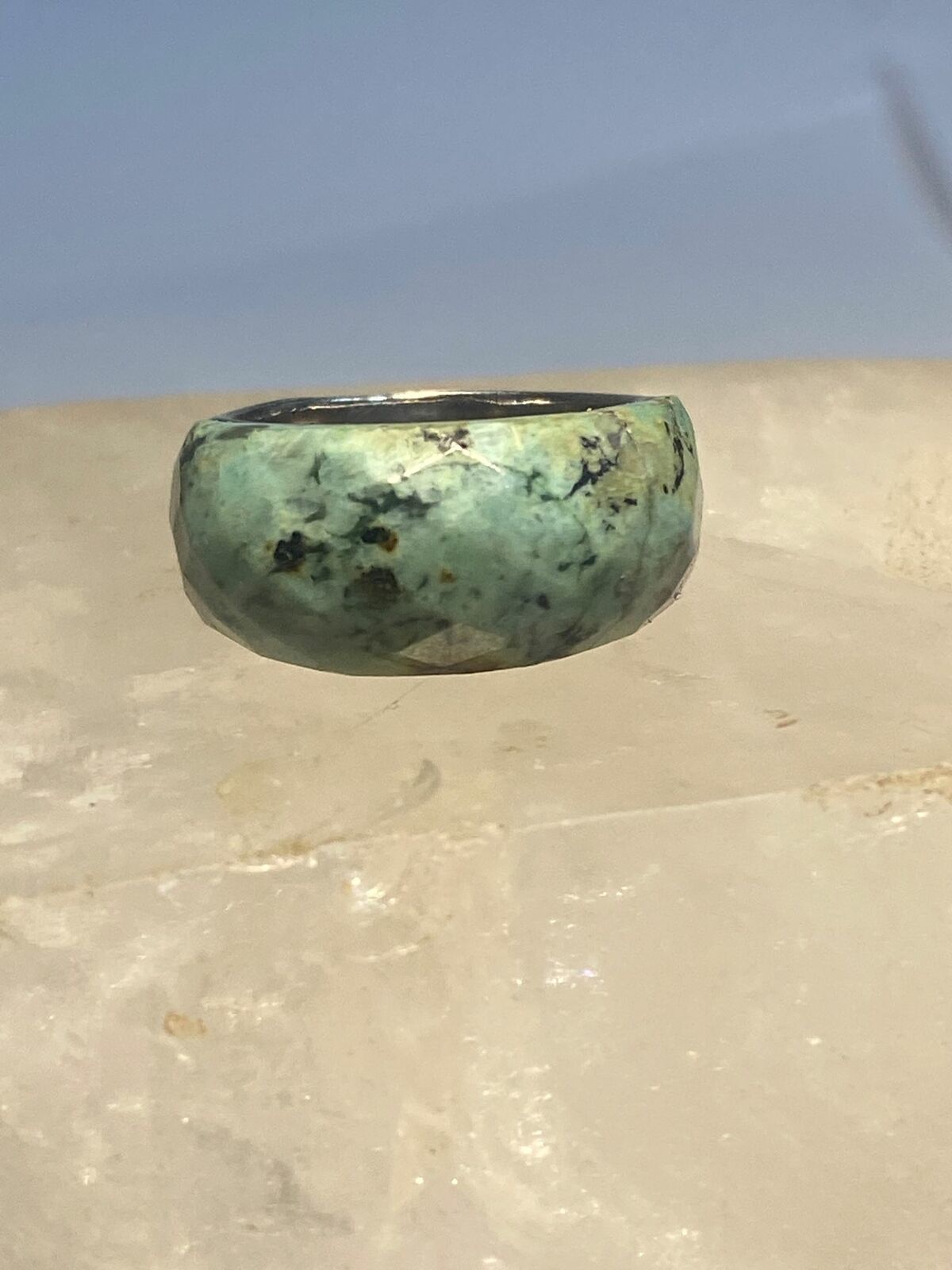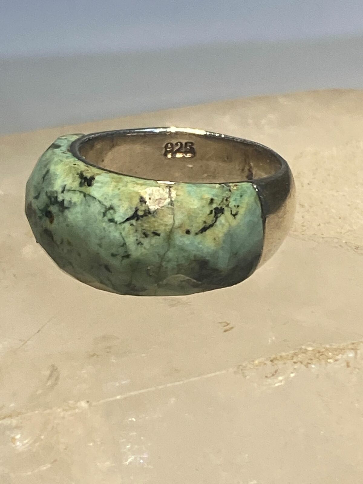 Green quartz? ring faceted band sterling silver women girls